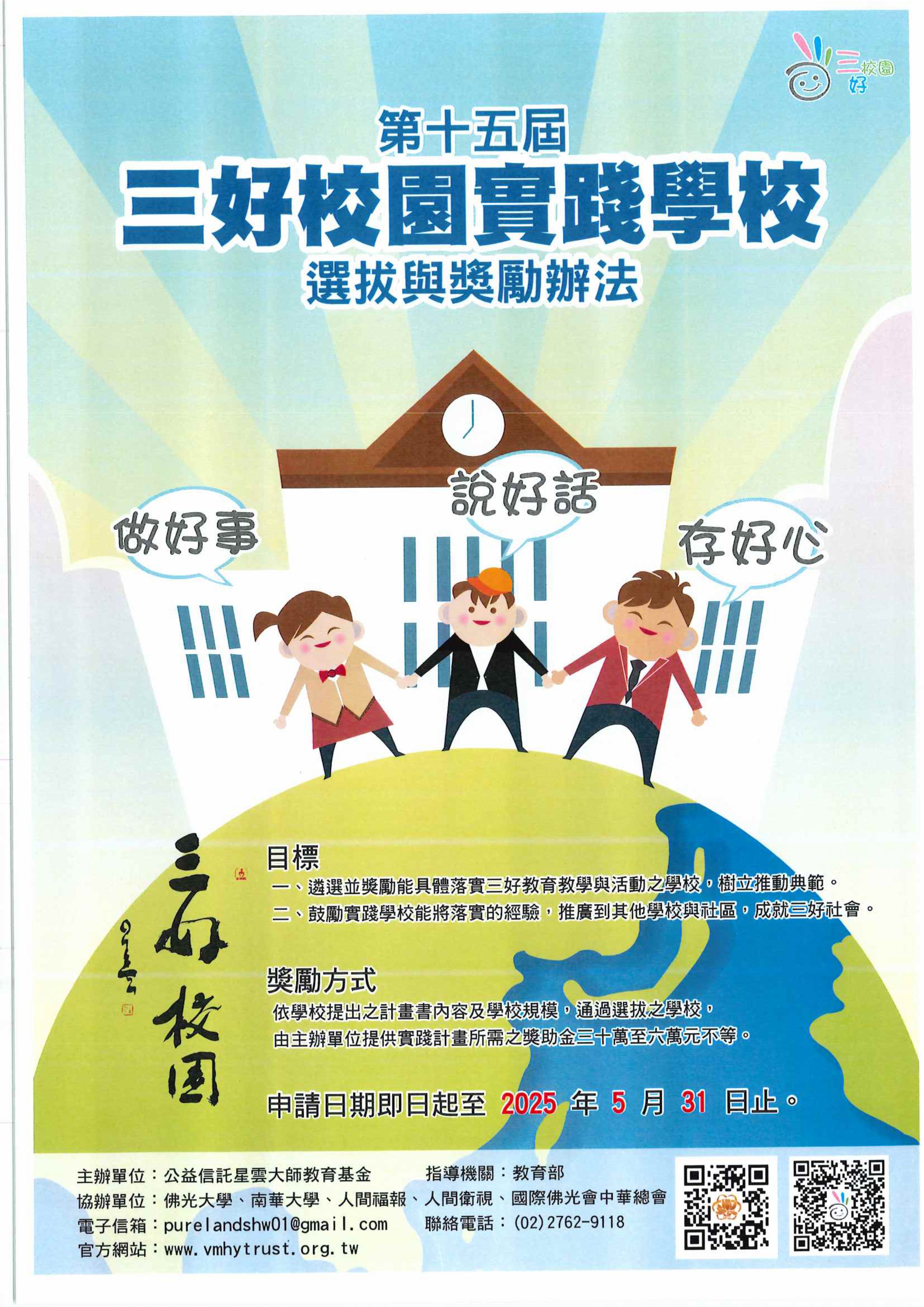「第十五屆三好校園實踐學校選拔與獎勵辦法」