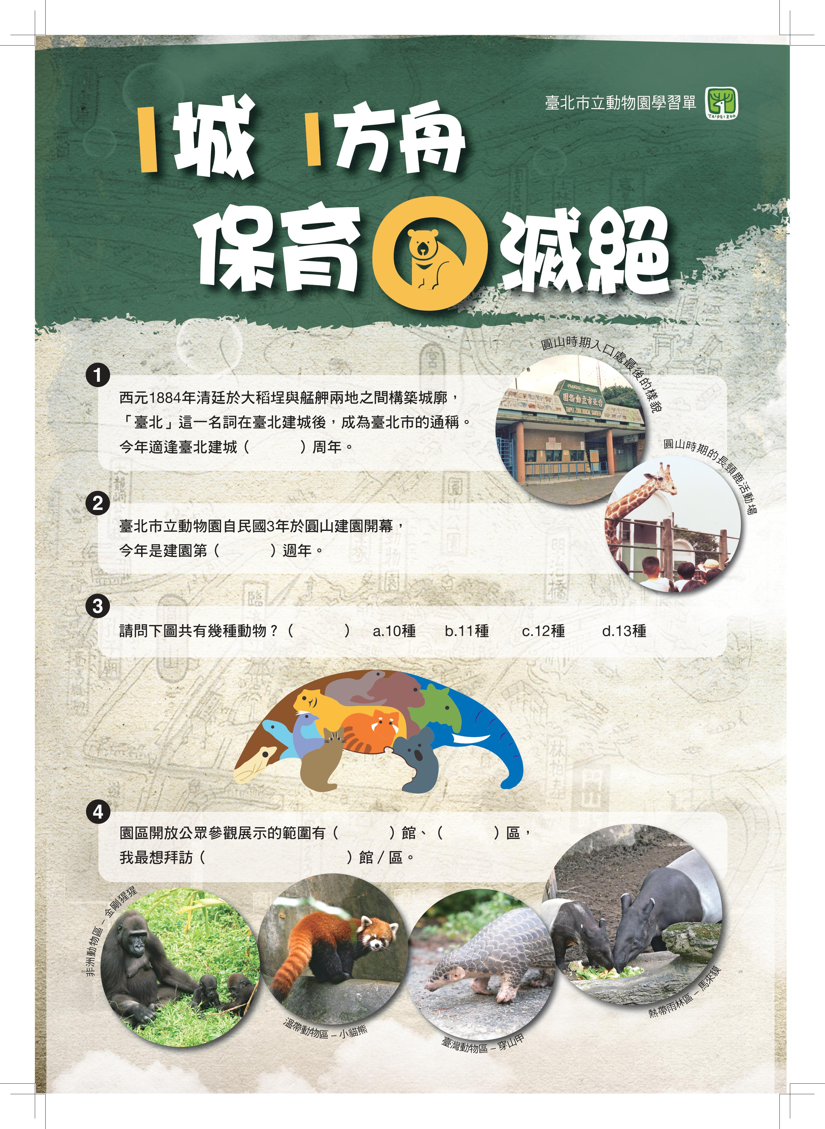 一、 今(113)年欣逢臺北市建城140週年及臺北市立動物園建園110週年,本園特別規劃旨揭活動,邀請臺北市各級學校師生參與,