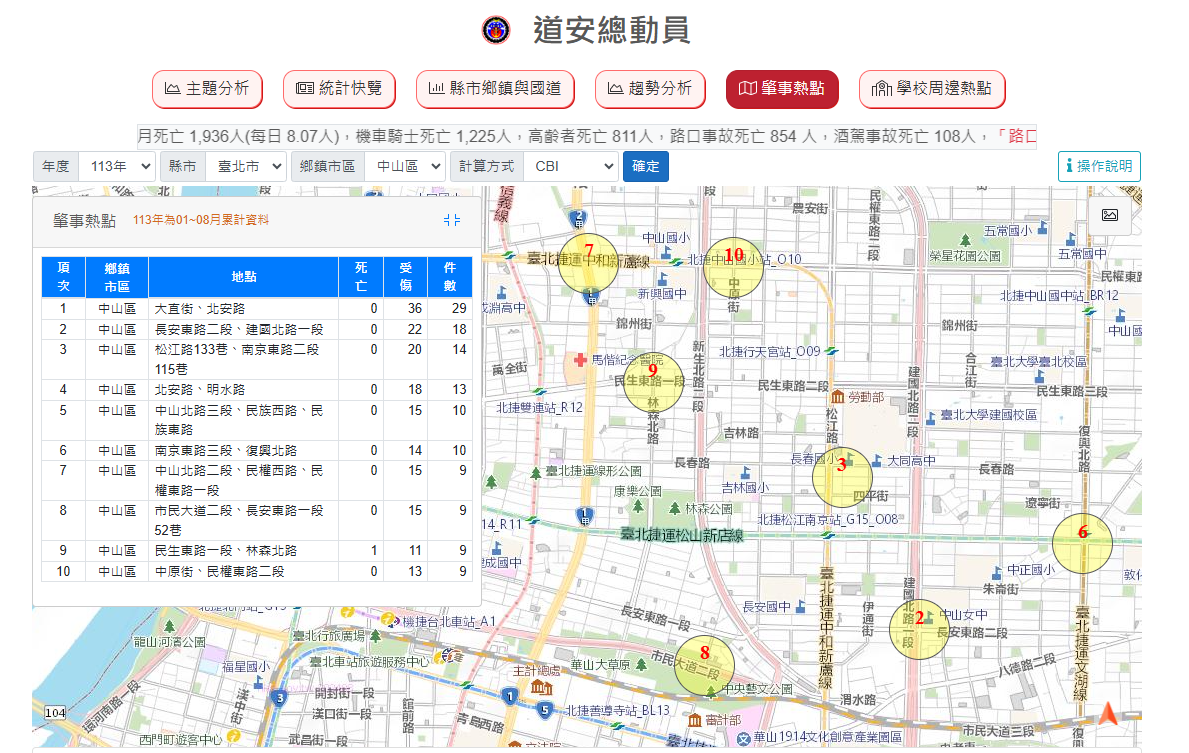 學校中正區、中山區肇事熱點公告