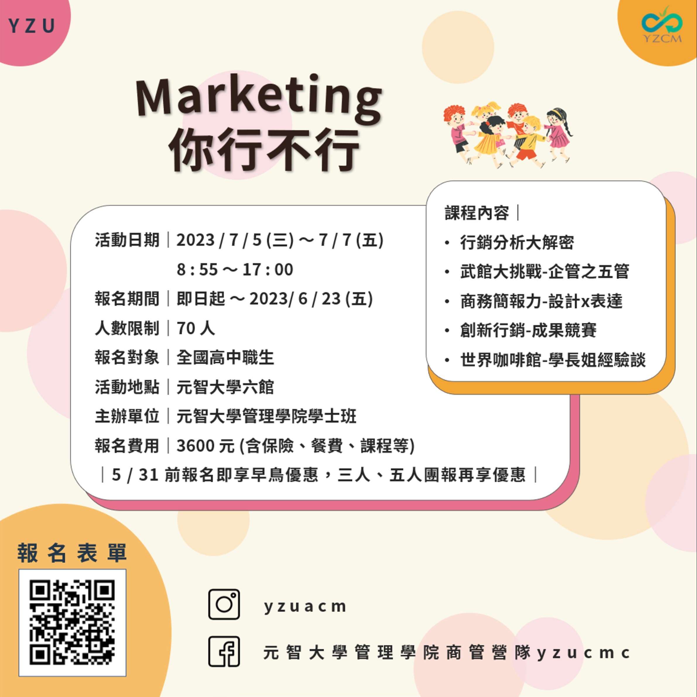 六、 報名方式:採線上報名https://forms.gle/xVQ5C17dueC73eAJ7(均為英文字母,請注意大小寫);營隊官網:https://yzucmcamp.weebly.com/。