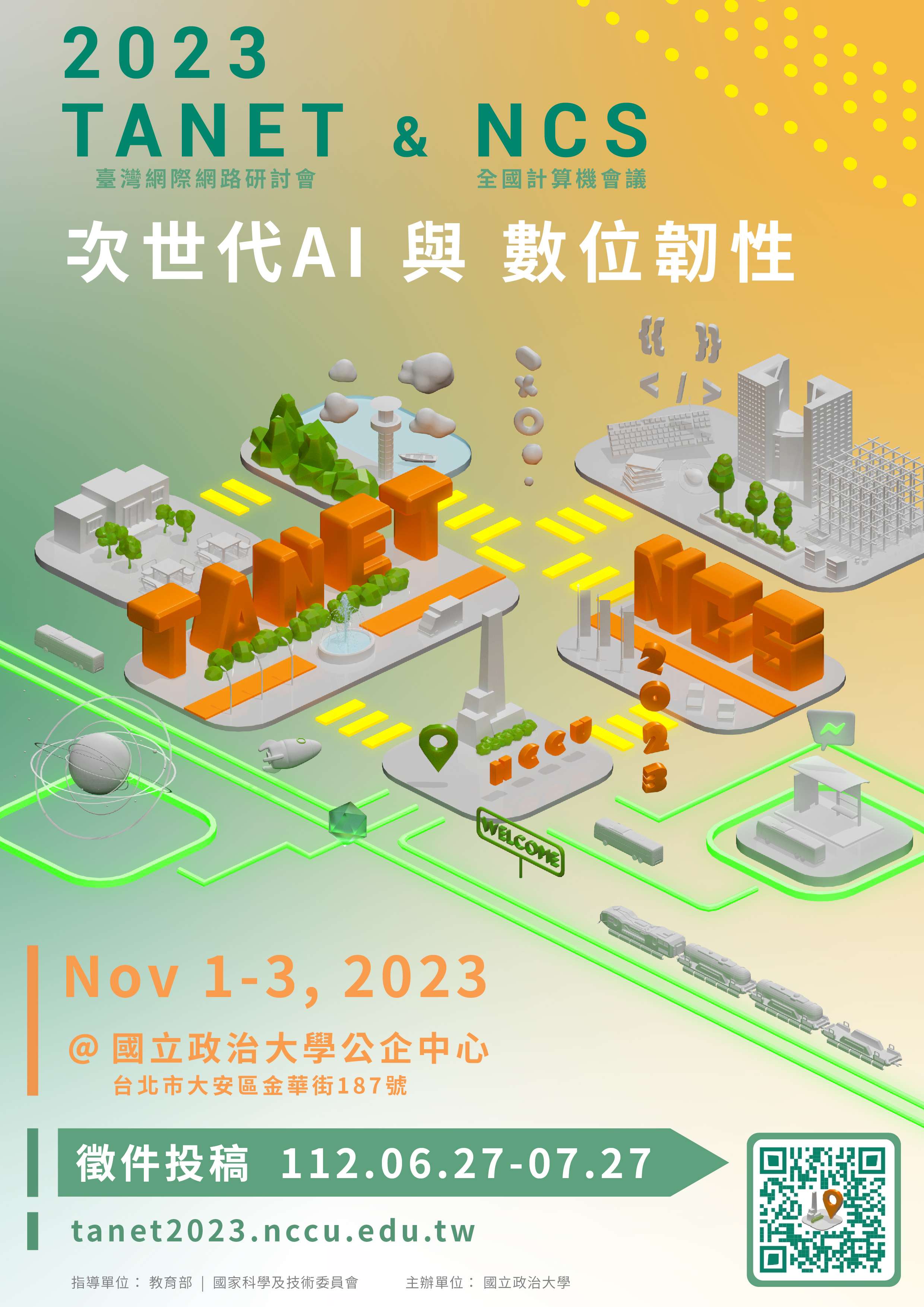 「2023年臺灣網際網路研討會TANET暨全國計算機會議NCS」自即日起開始辦理論文徵稿,請踴躍投稿及參與研討會。