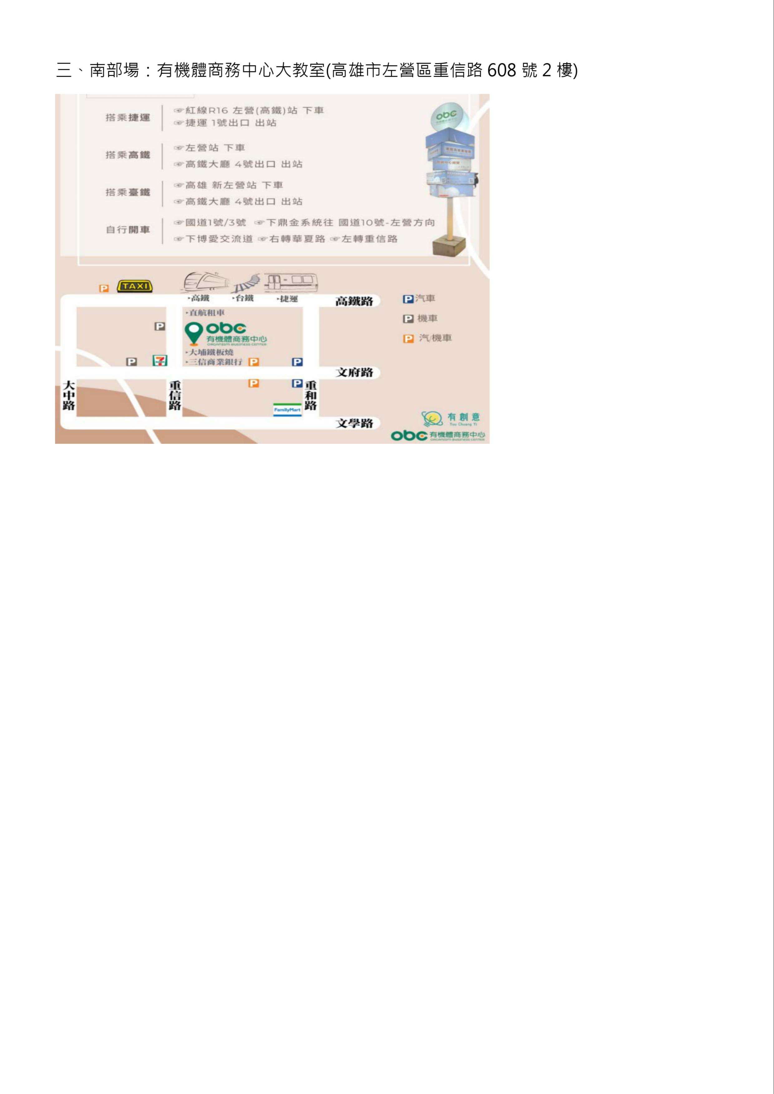 (三) 南部:有機體商務中心大教室(高雄市左營區重信路608號2樓)。