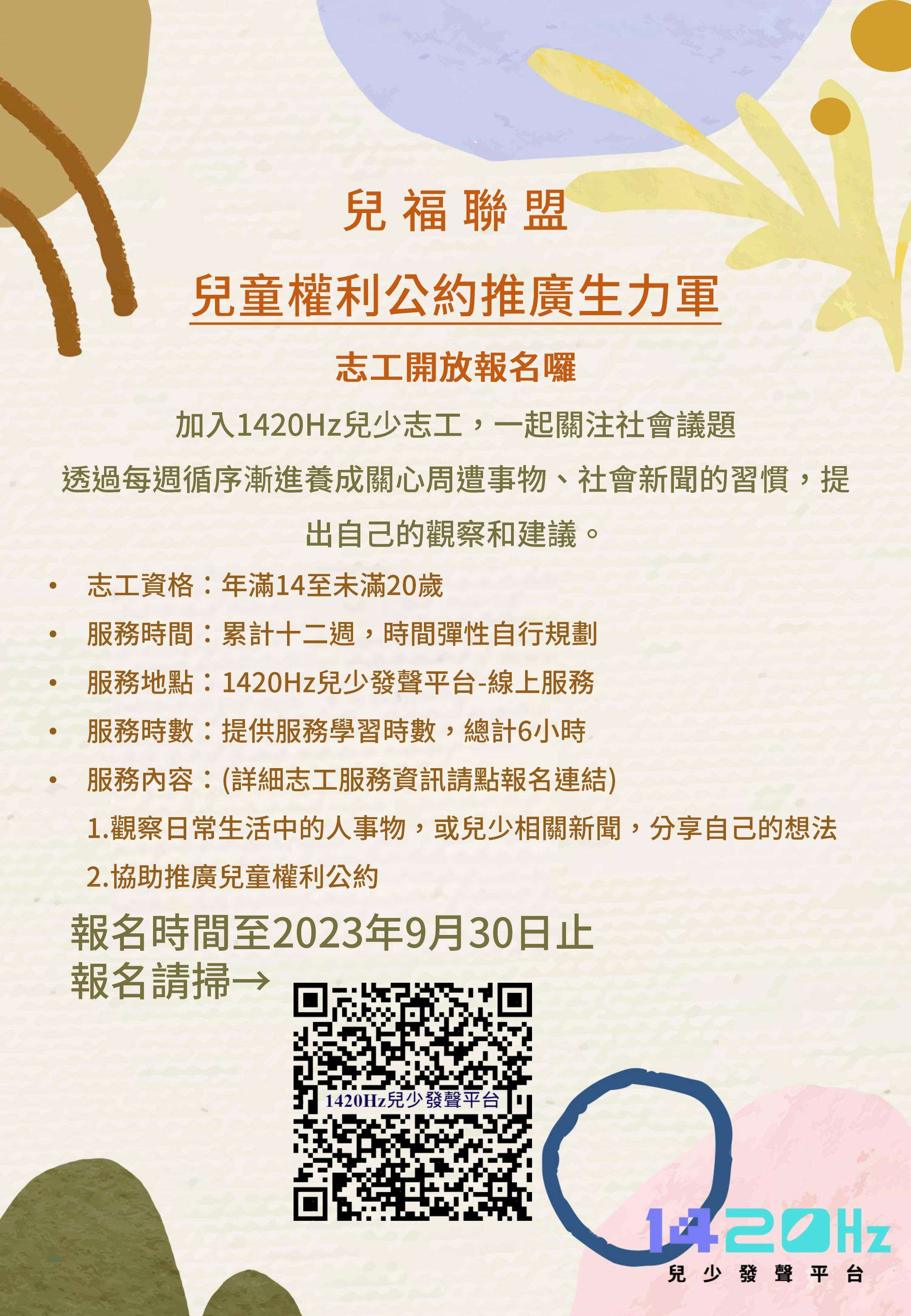 一、 兒福聯盟長期致力於推廣及保障兒童權利,邀請兒少成為「兒童權利公約推廣生力軍」志工,