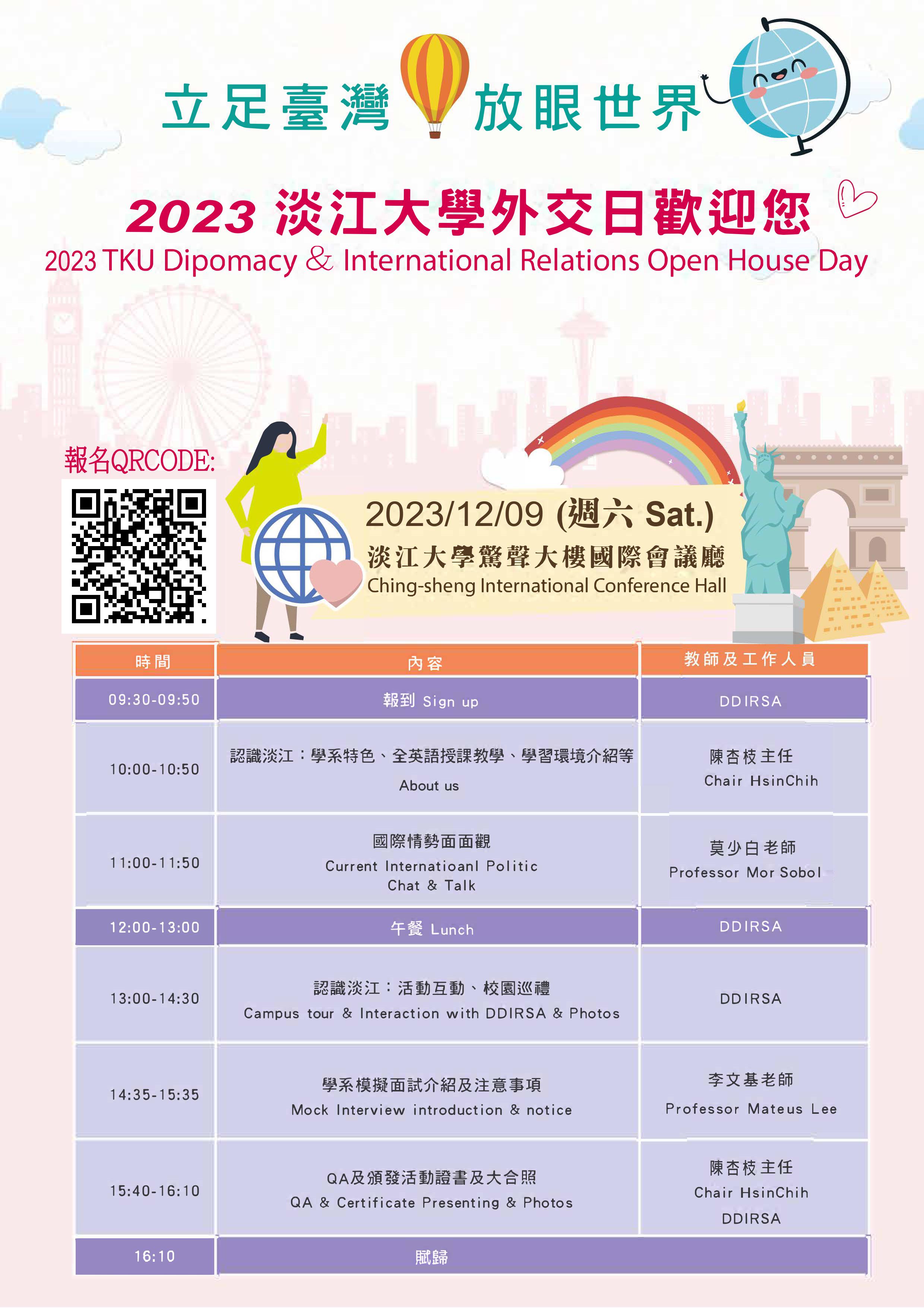 一、 活動內容包含系所介紹(全英語授課環境、與來自全世界各地的學生共同學習成長)、理解國際現勢及知識、校園環境認識、模擬面試介紹等。