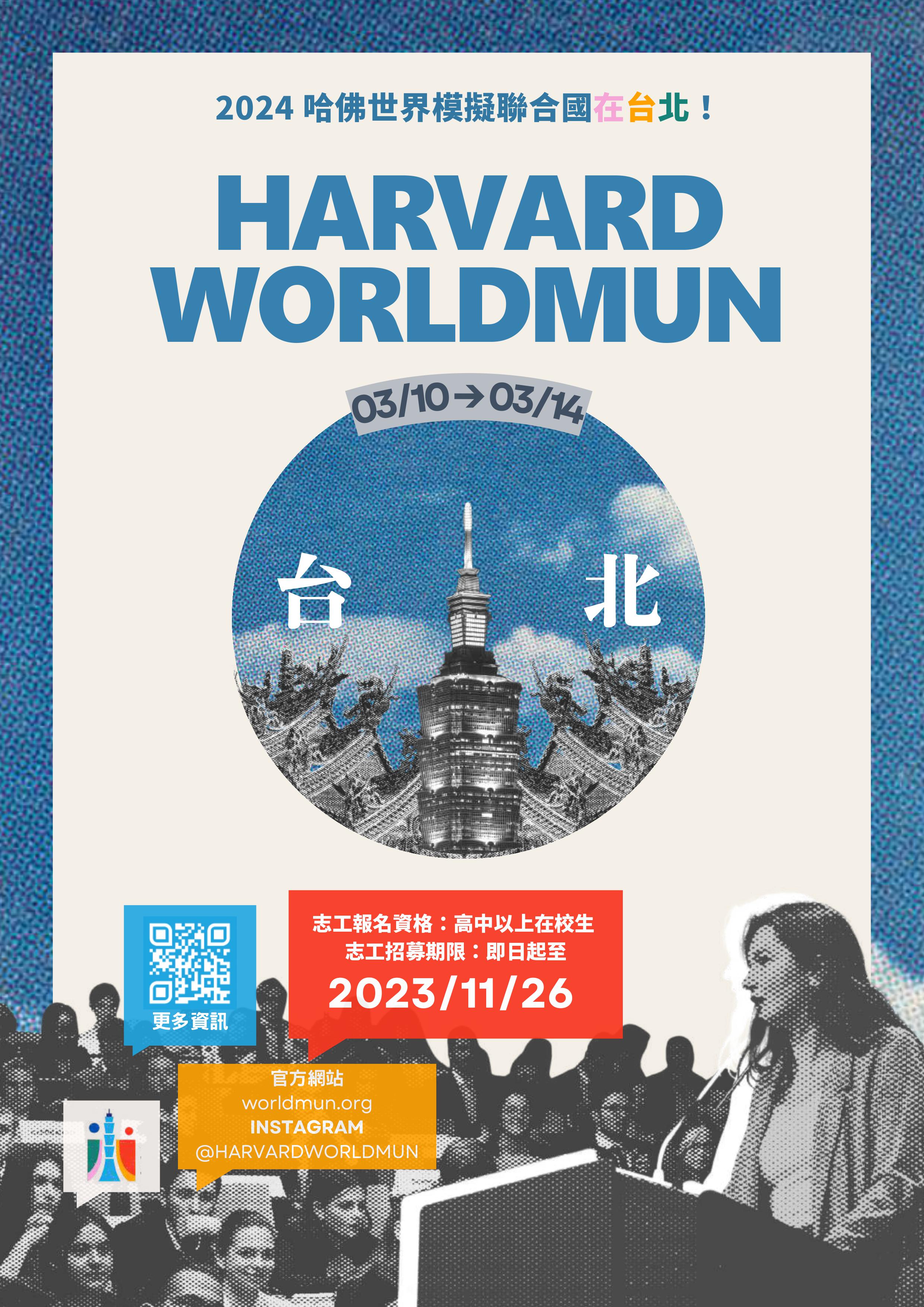 活動為台灣模聯學會與美國哈佛大學模擬聯合國共同主辦,訂於明(113)年3月10日至14日於臺北市舉辦,