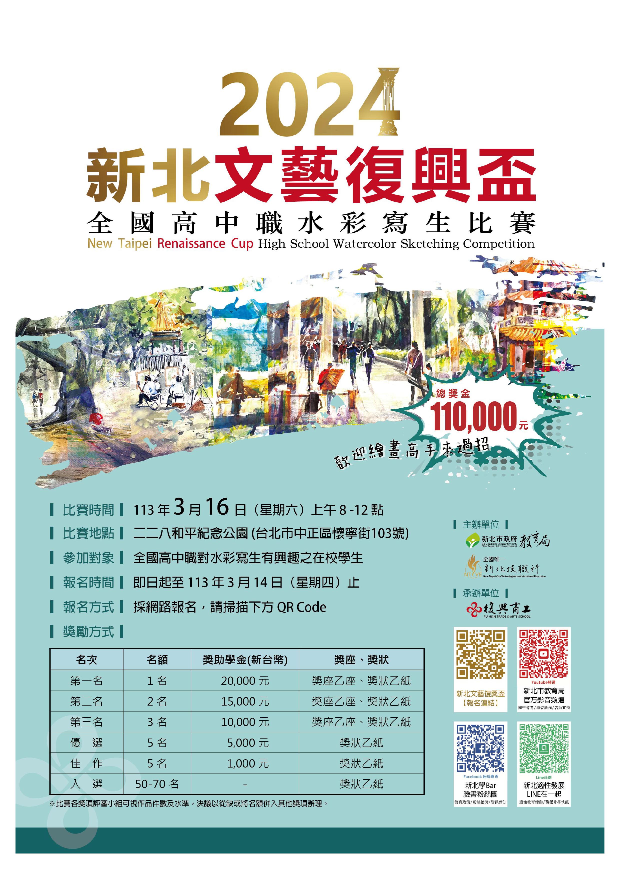 (三)參賽對象:全國高中職對繪畫寫生有興趣之在校學生。