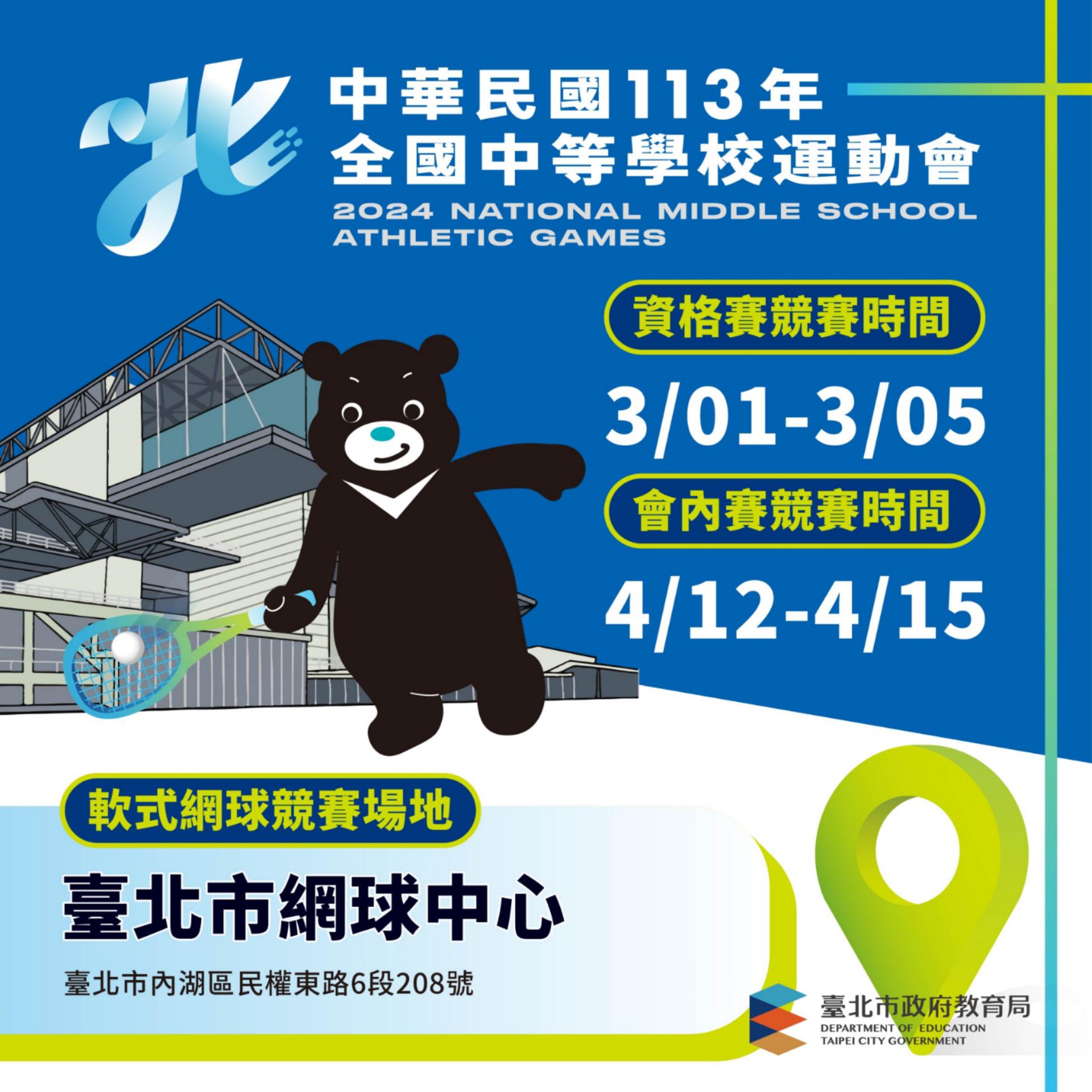 全中運軟式網球113年3月1日至3月5在內湖網球中心舉行資格賽,歡迎到場觀賽為選手加油!