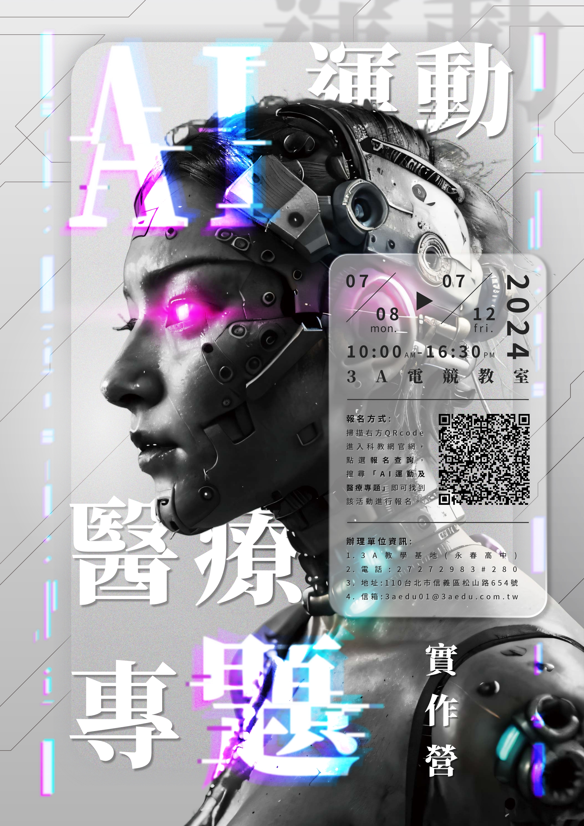 一、臺北市3A教學基地中心辦理「AI運動及醫療專題實作暑期營隊」,課程班別與時間: