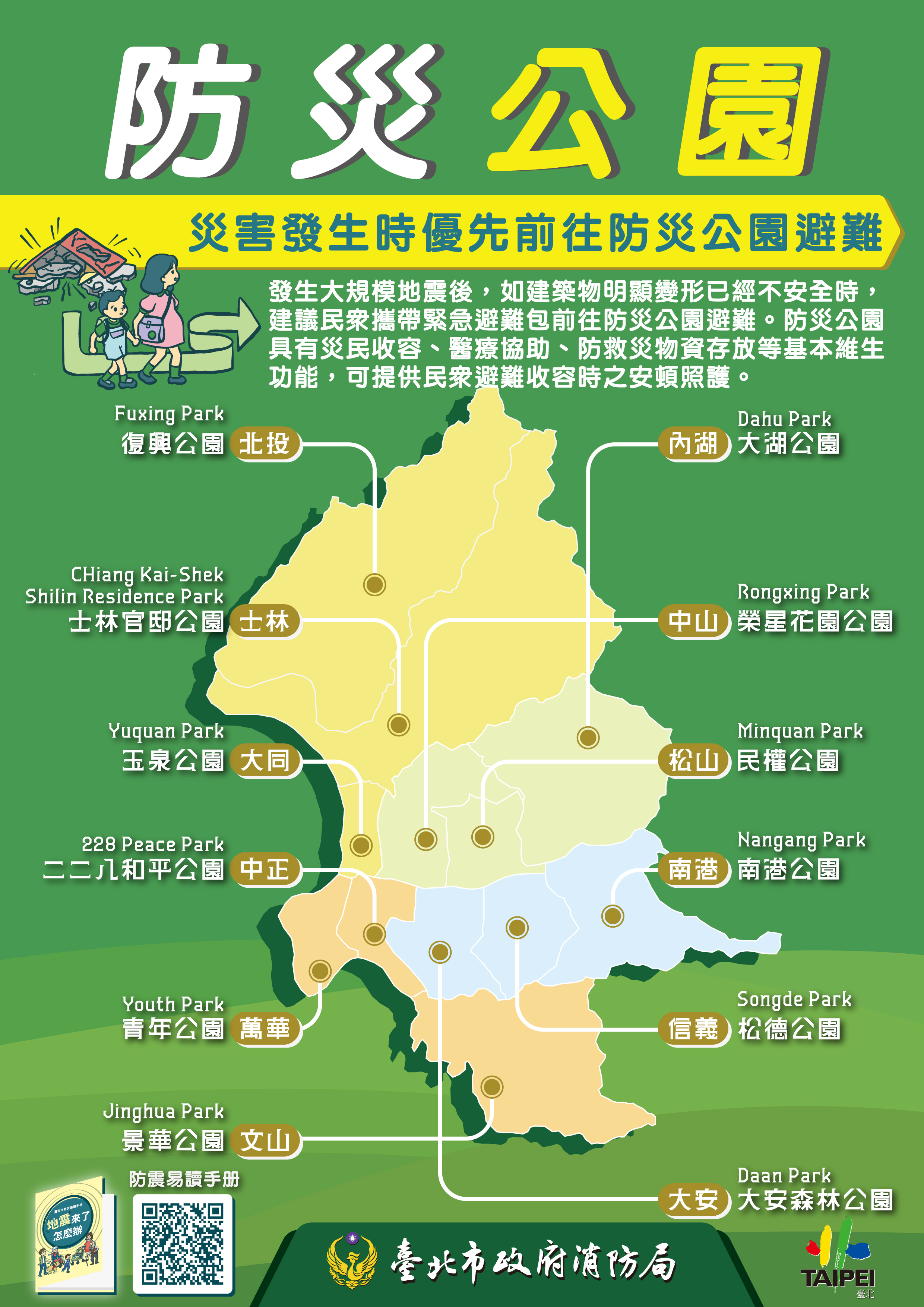 災後如建築物受損不宜居住,應前往最近的防災公園進行避難。