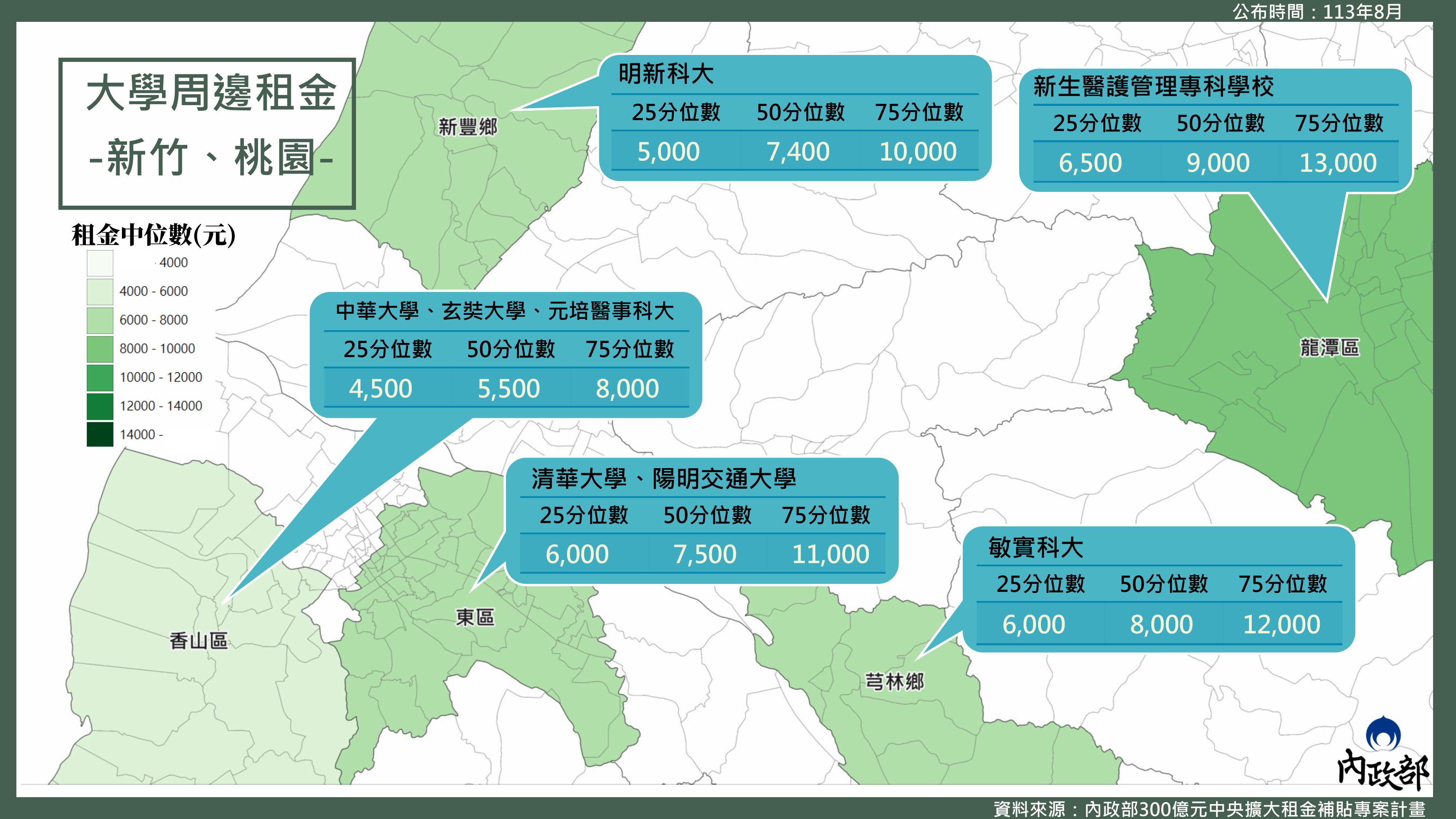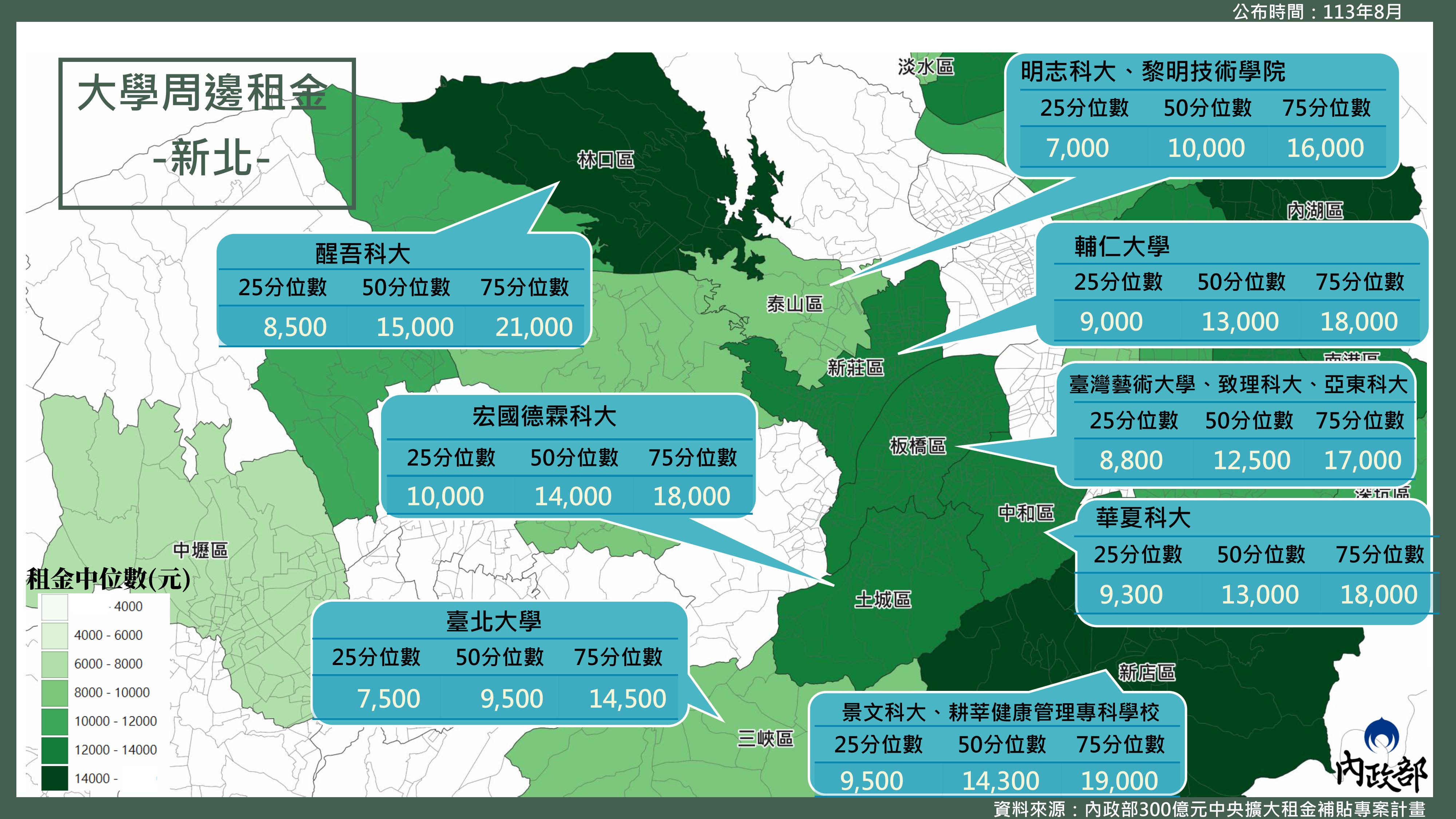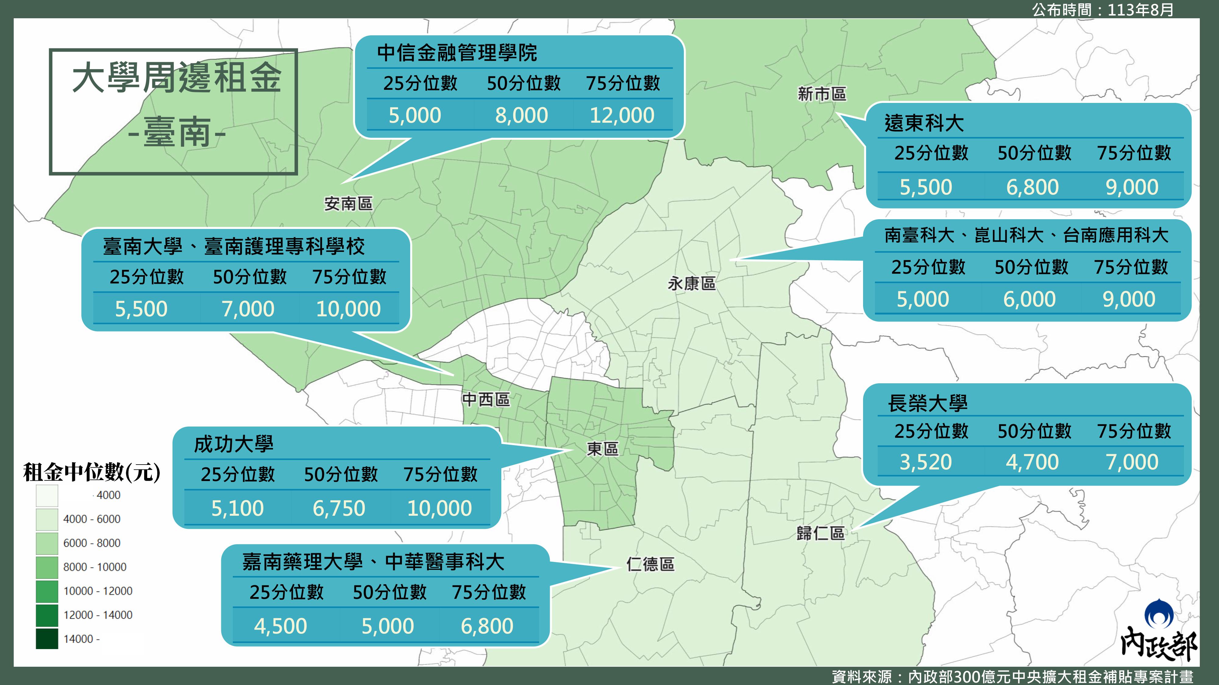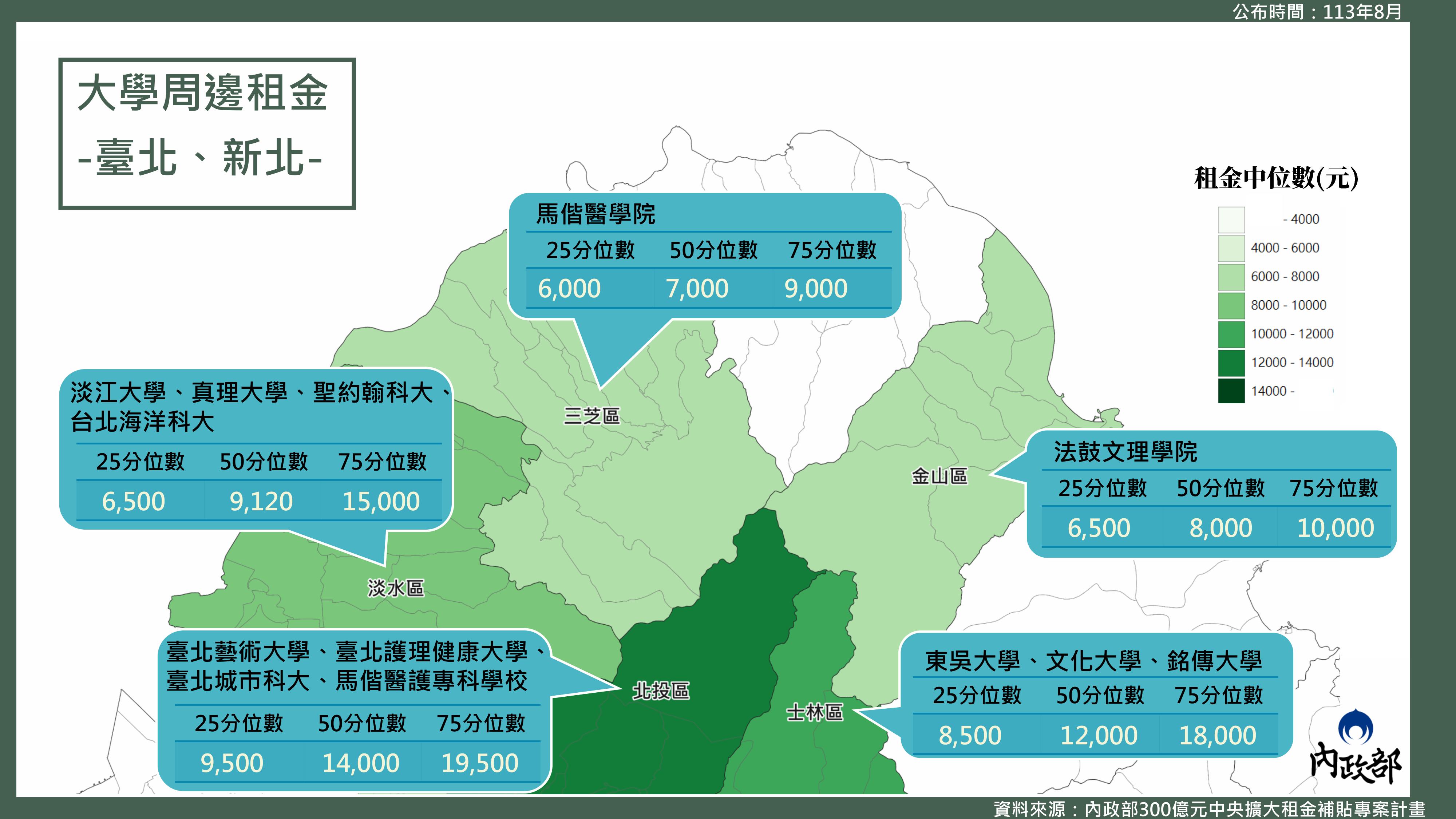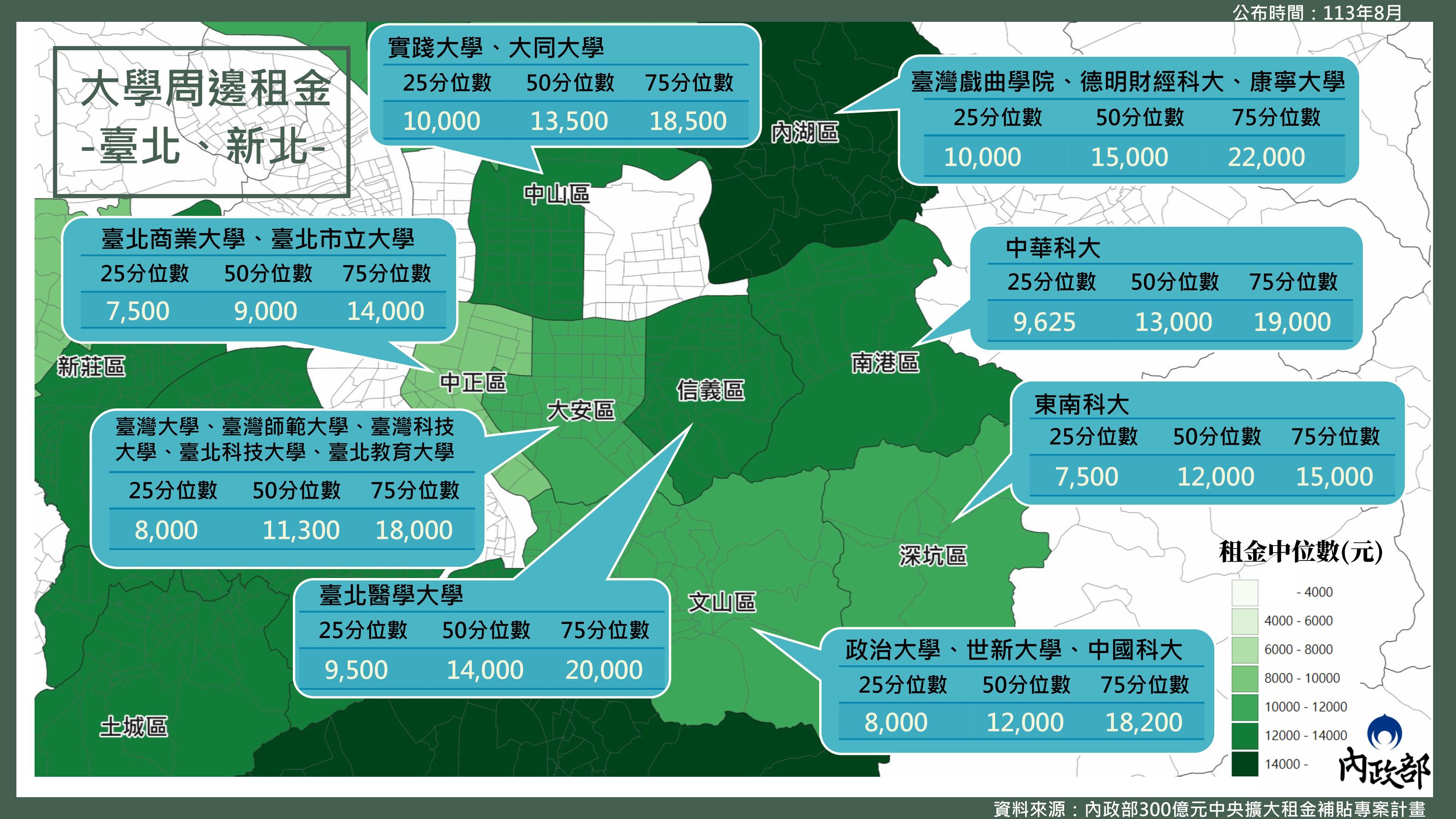 內政部為提供更直覺易查大專院校周邊租金統計資訊已完成圖卡製作,並置於內政部地政司網站「租賃條例專區」(網址:https://www.land.moi.gov.tw/chhtml/news/89)