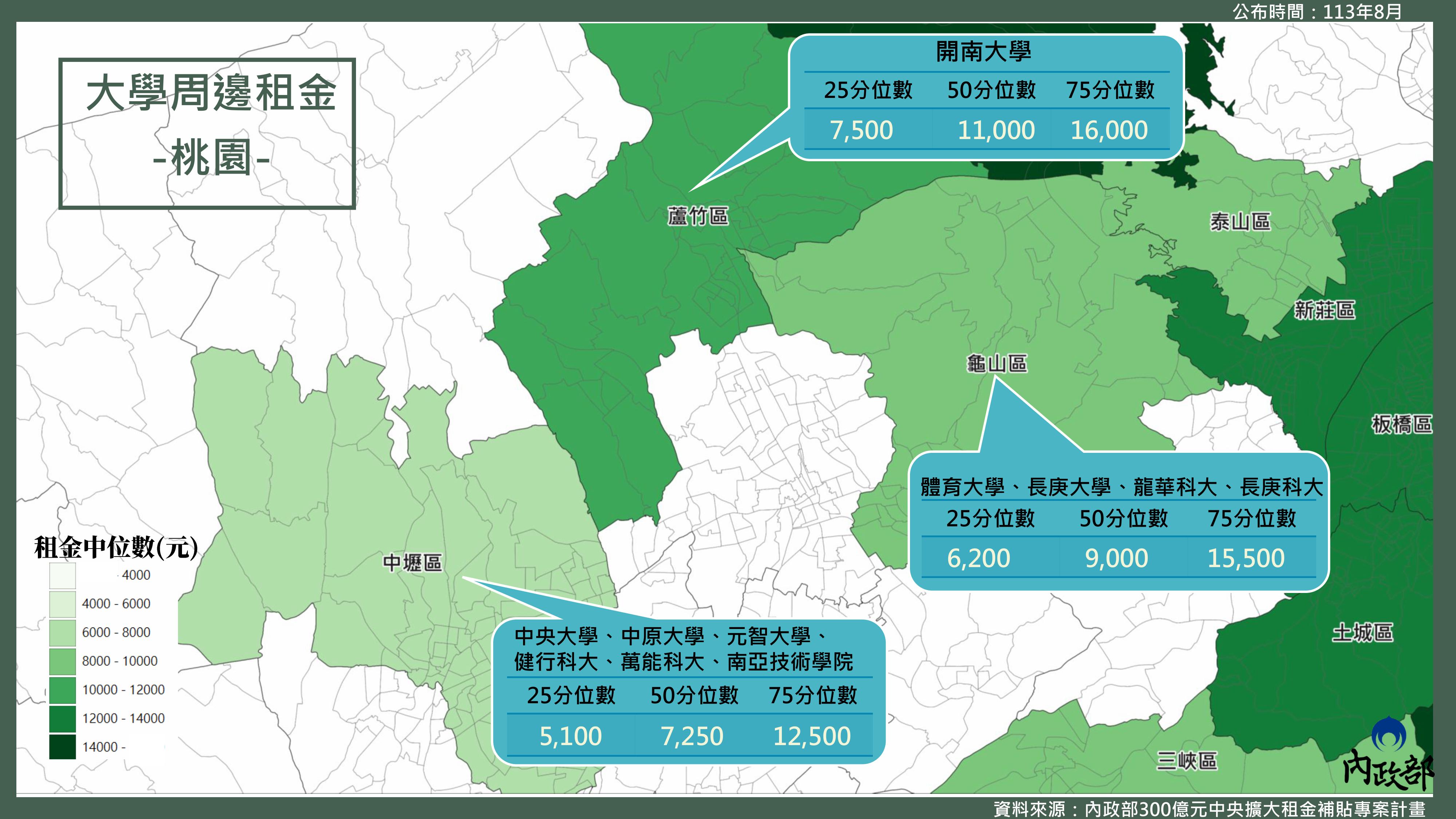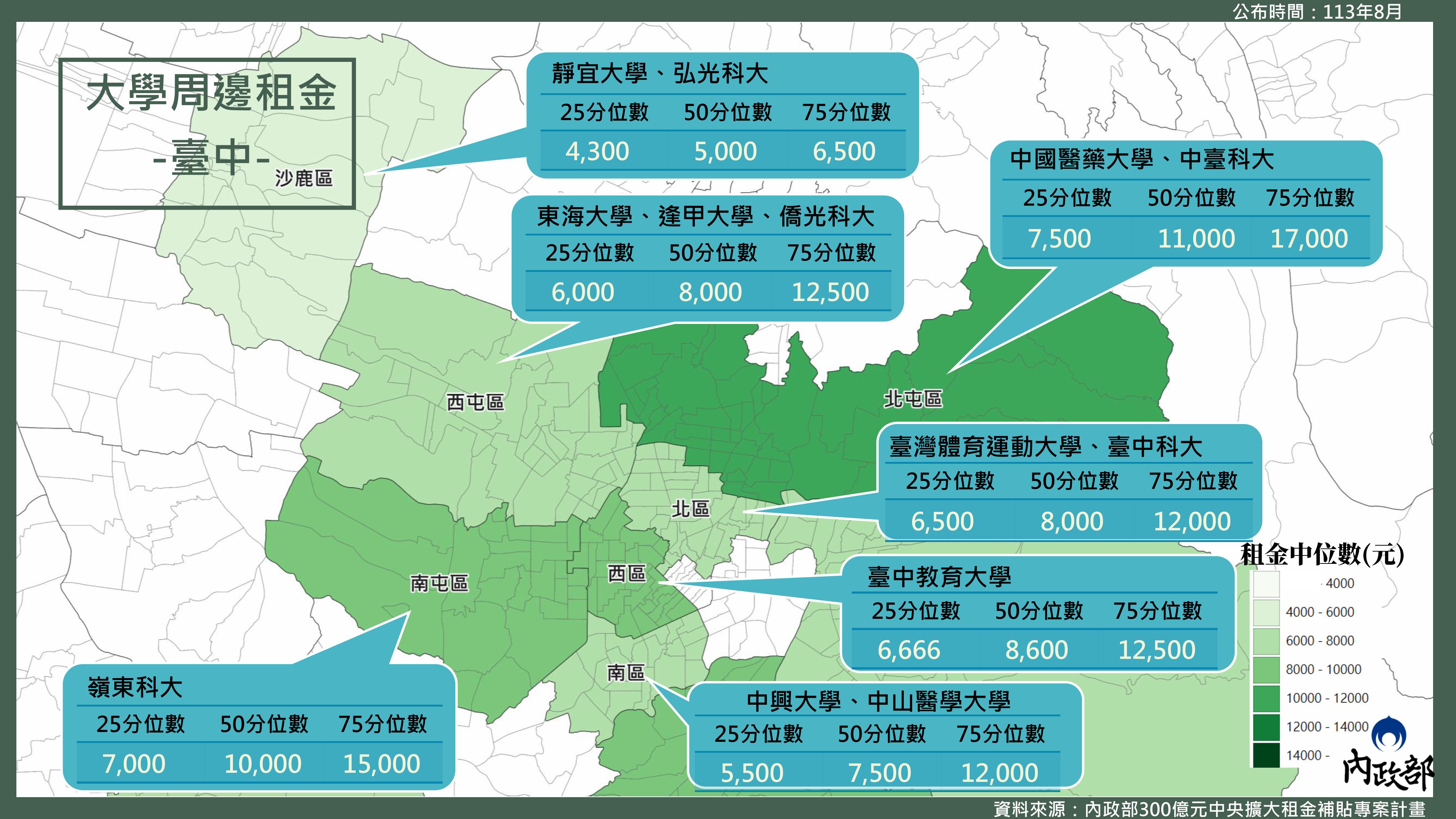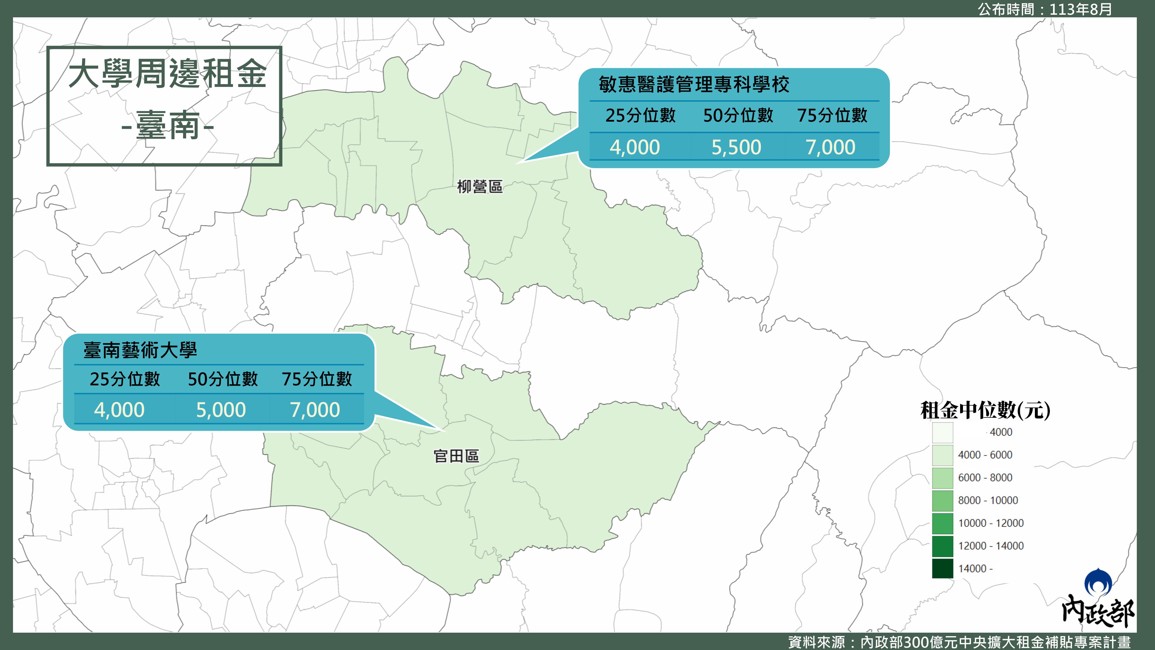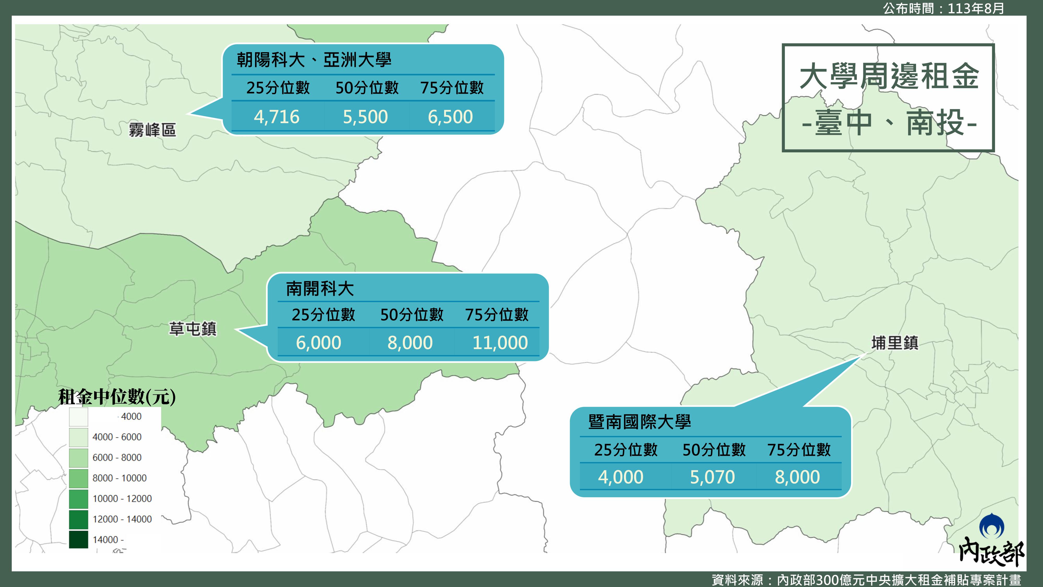 內政部為提供更直覺易查大專院校周邊租金統計資訊已完成圖卡製作,並置於內政部地政司網站「租賃條例專區」(網址:https://www.land.moi.gov.tw/chhtml/news/89)
