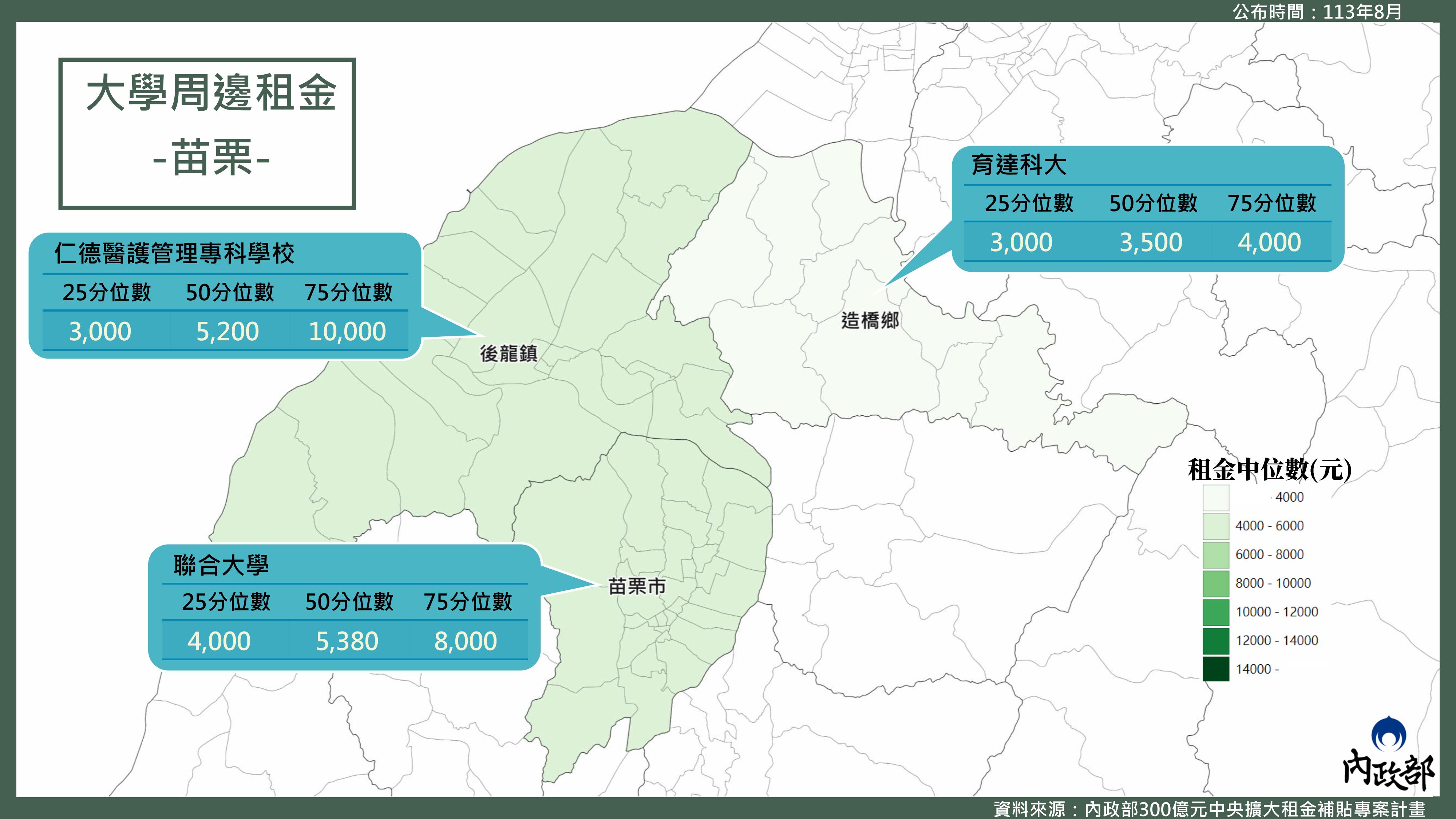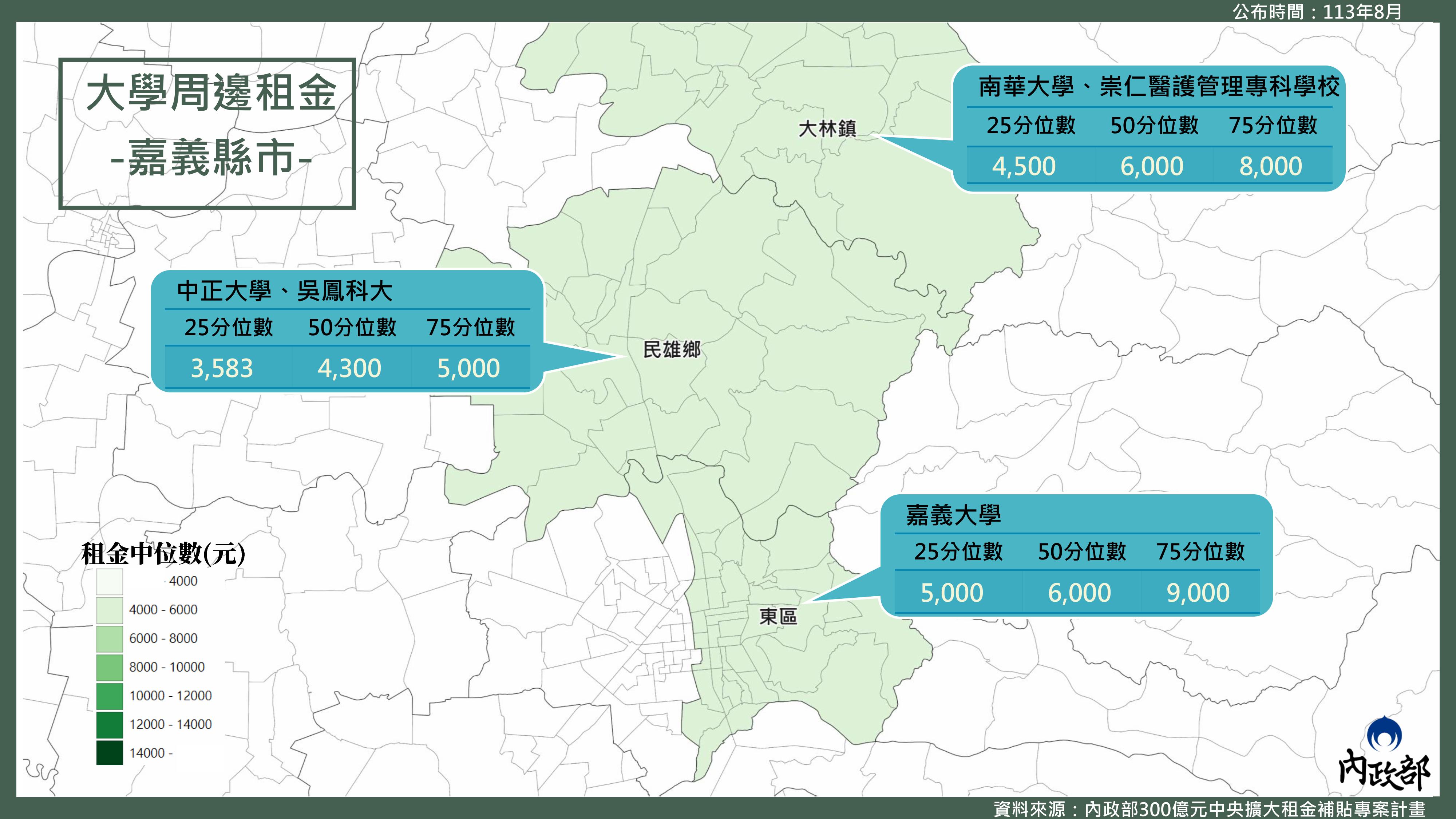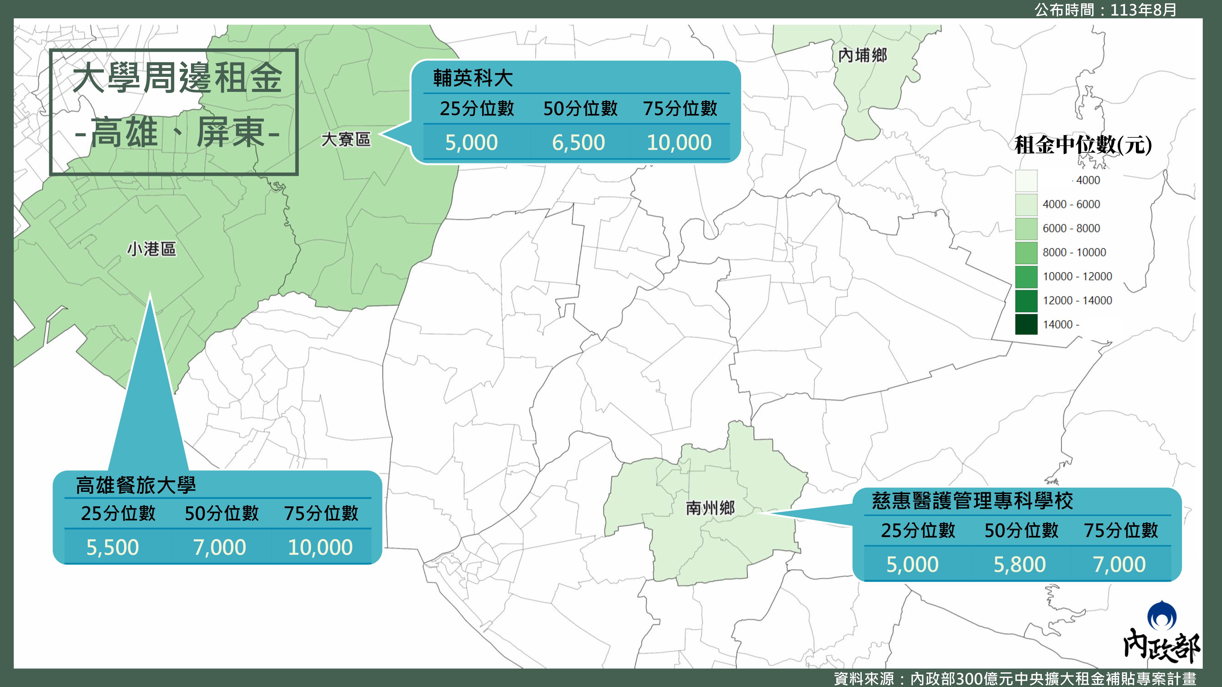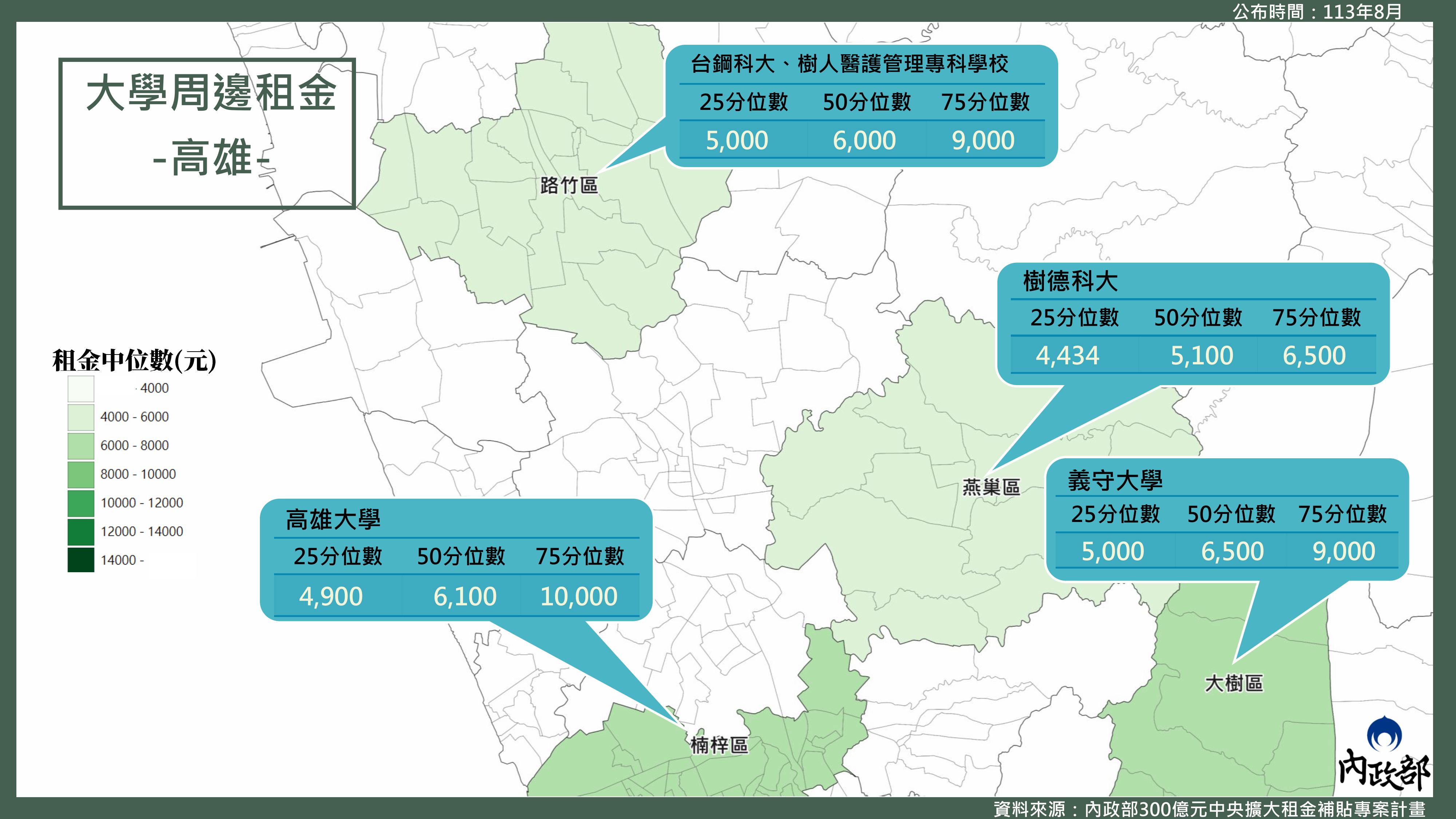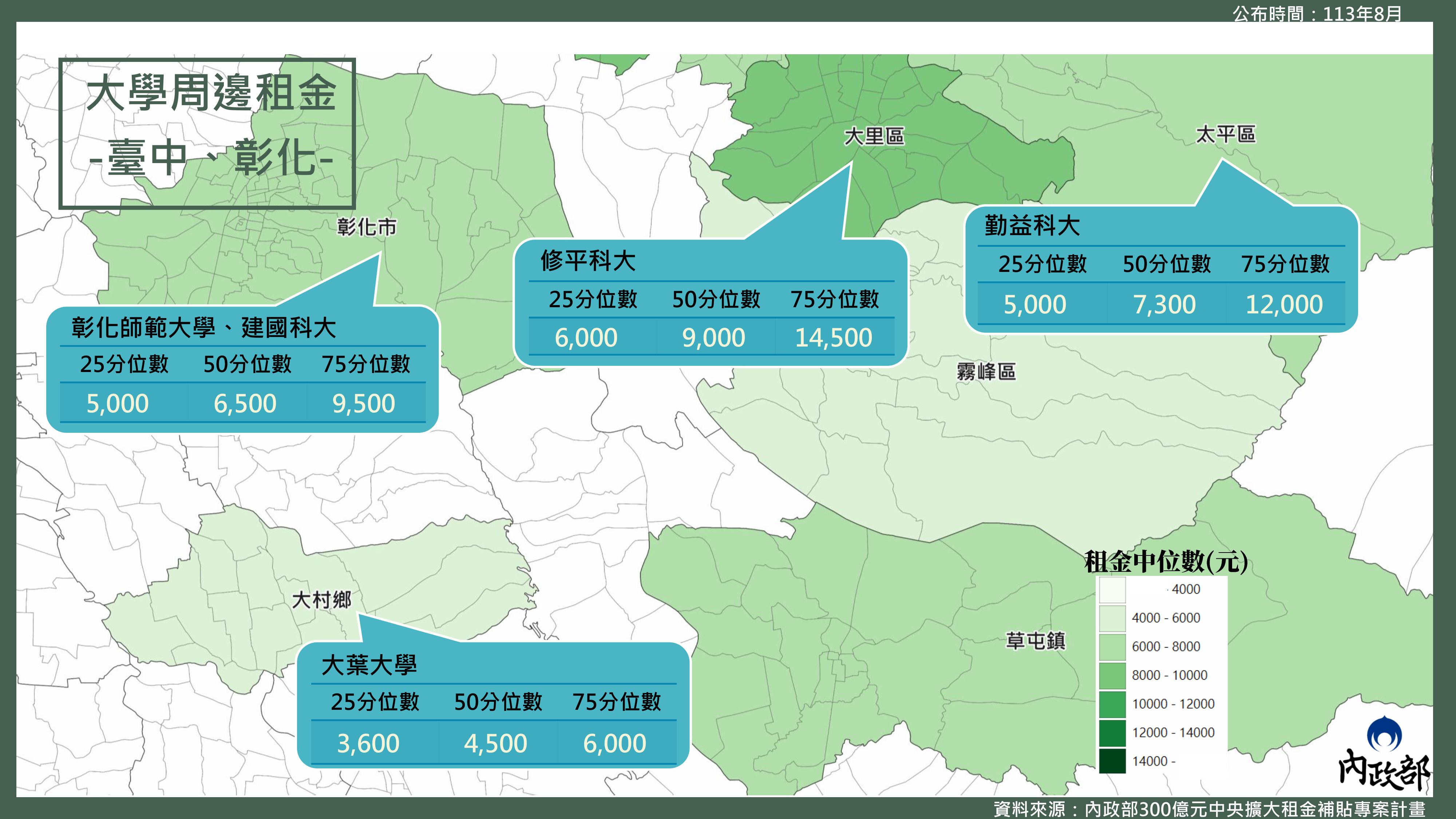 內政部為提供更直覺易查大專院校周邊租金統計資訊已完成圖卡製作,並置於內政部地政司網站「租賃條例專區」(網址:https://www.land.moi.gov.tw/chhtml/news/89)
