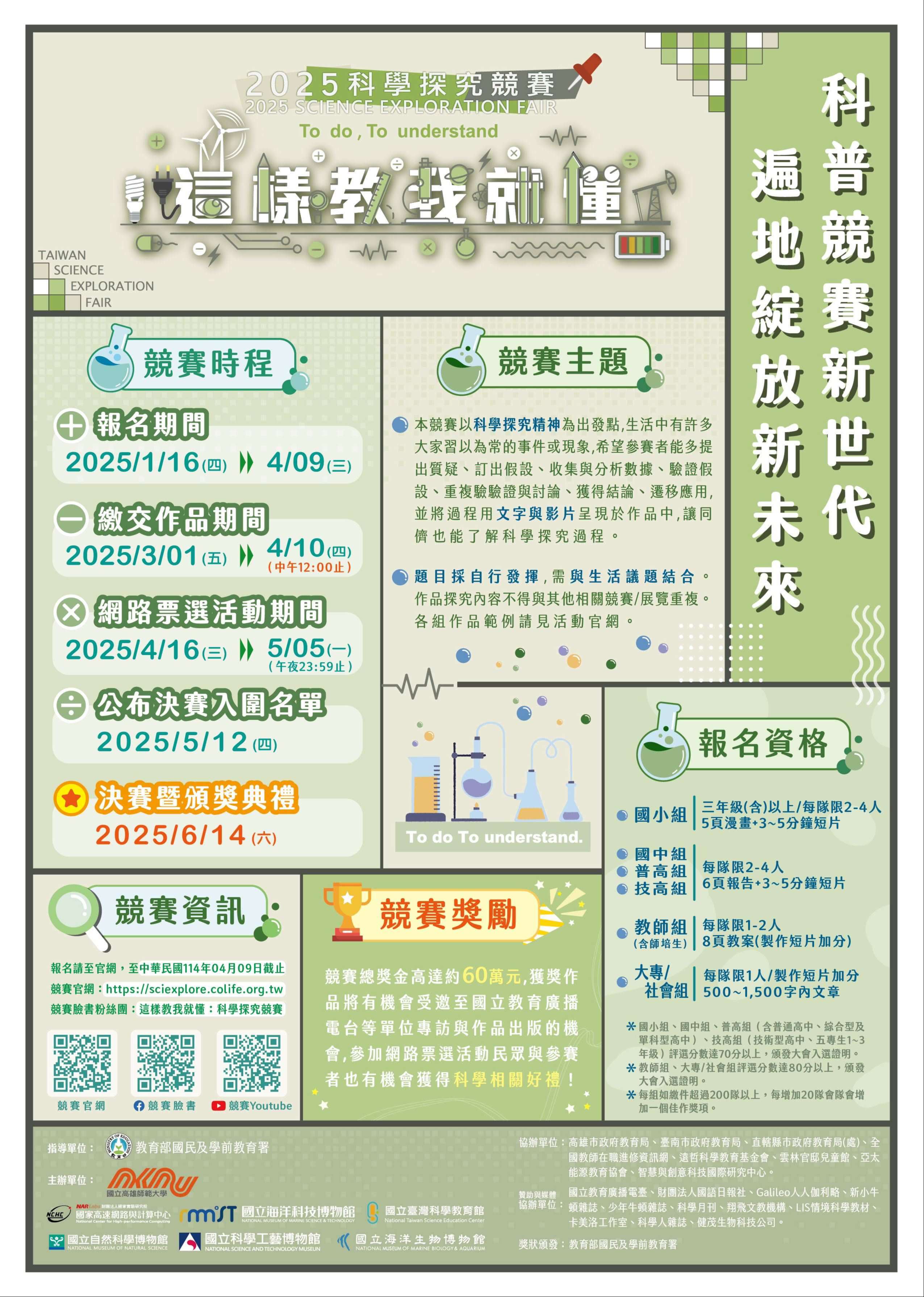 敬請本校師生踴躍參與,透過實際行動探索科學的無窮奧秘!