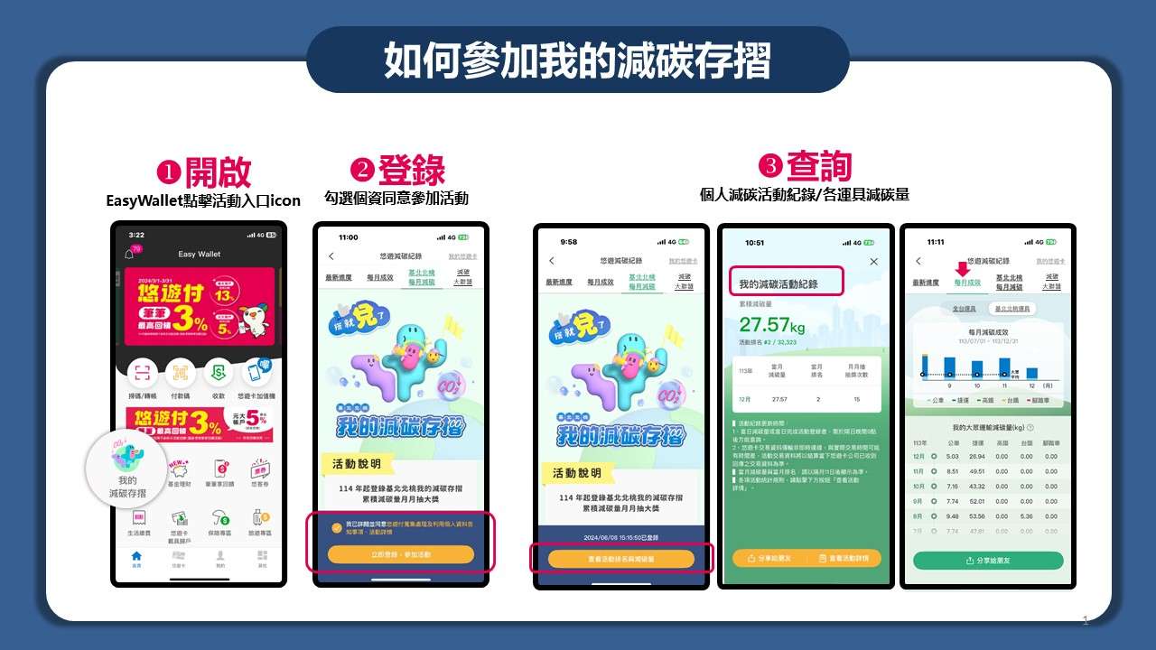 二、為推動淨零碳排目標,鼓勵市民使用公共運輸,基北北桃四市交通單位、公共運輸業者及悠遊卡股份有限公司共同推動「我的減碳存摺」全民運動。活動期間自114年1月1日至12月31日,民眾可累積減碳量並兌換獎項,詳細資訊請參閱活動官網(https://co2-passbook.com/)。