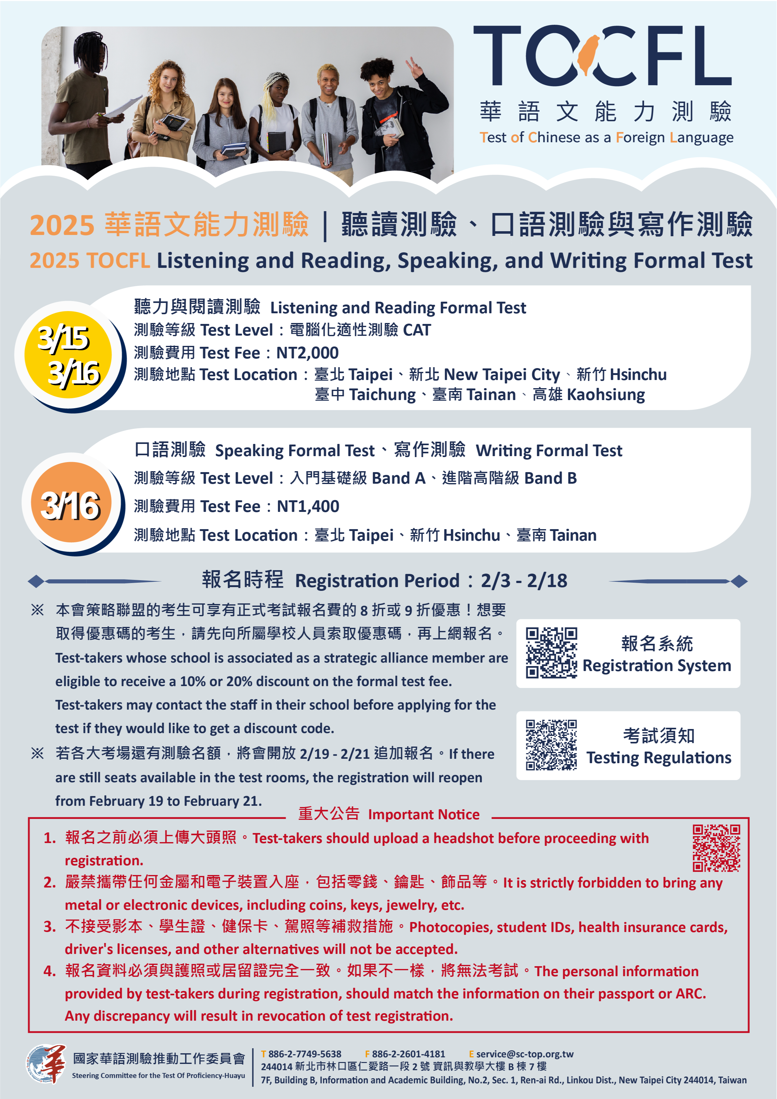 (四)報名時填寫的個人資訊須與護照或居留證一致,否則視為報名無效