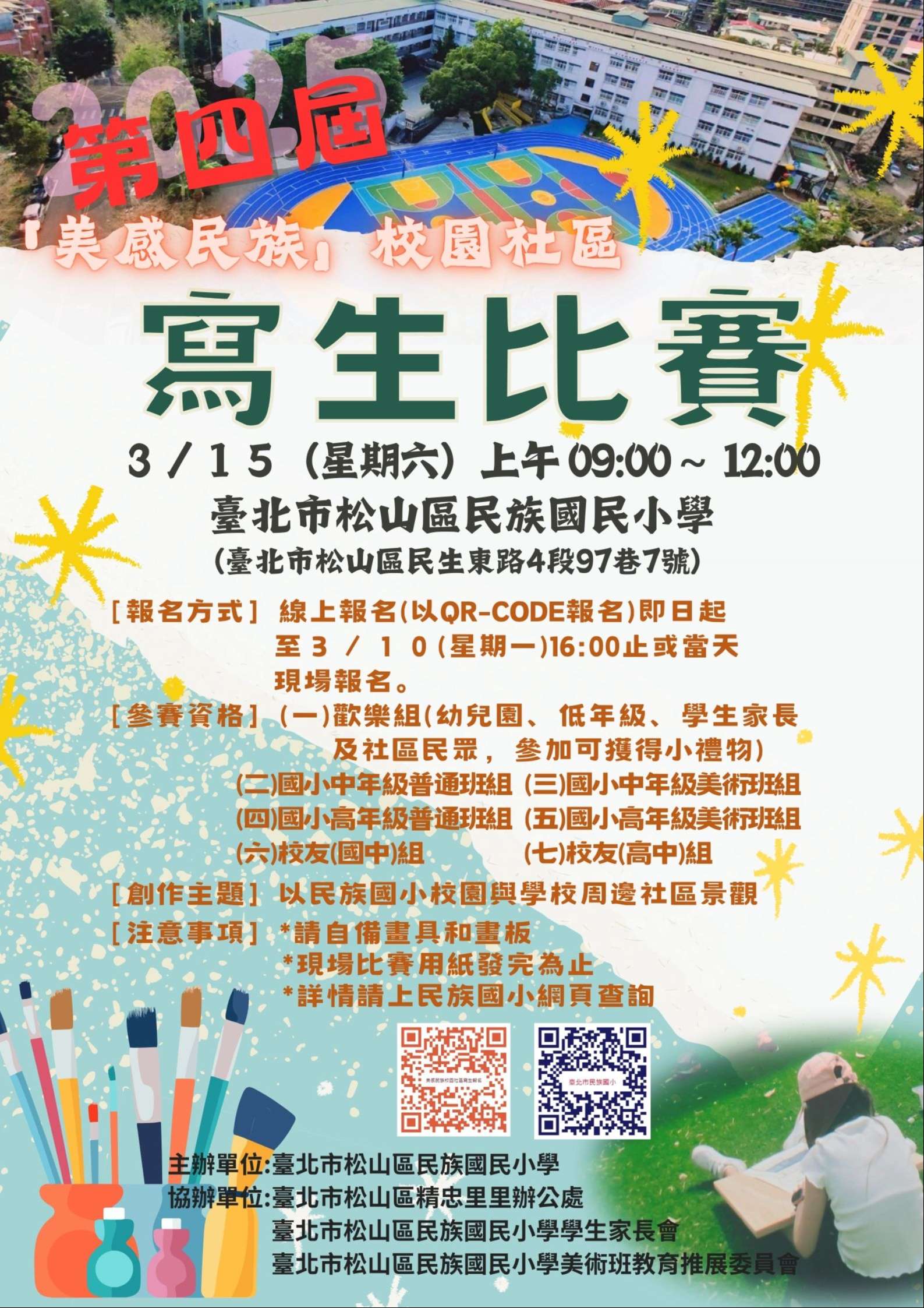 臺北市松山區民族國民小學(臺北市松山區民生東路四段97巷7號),若遇雨天,活動照常舉行。