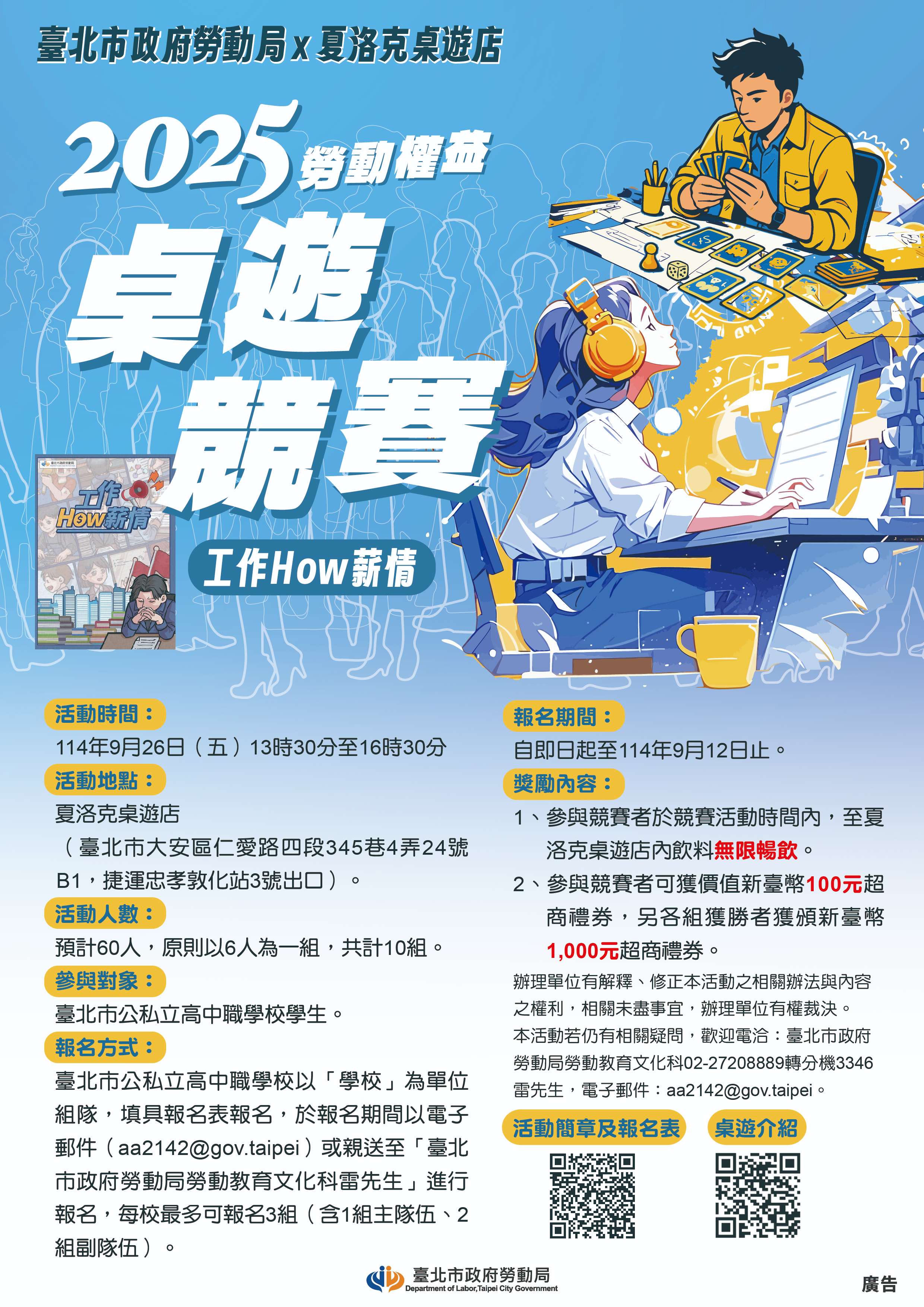 三、辦理單位:臺北市政府勞動局、夏洛克桌遊店。