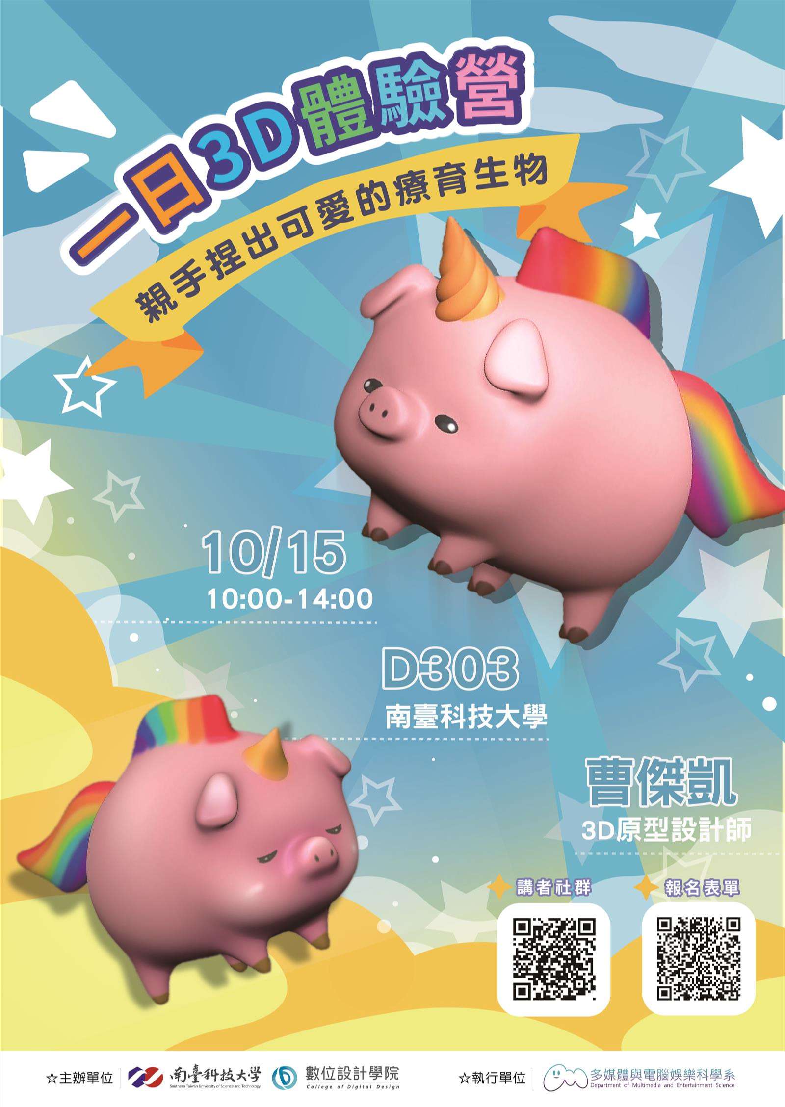 南臺科技大學辦理「一日3D體驗營」,帶領學員親手創作可愛療癒生物,相關資訊如下: