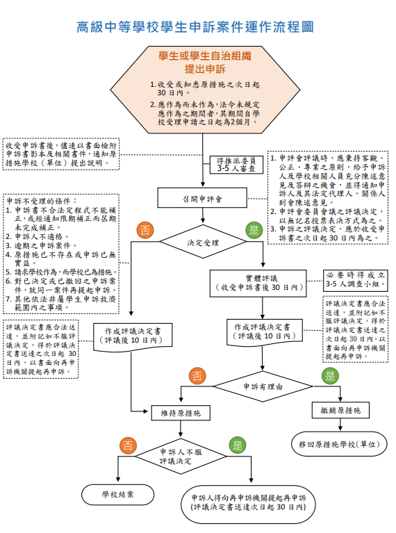 臺北市數位實驗高級中等學校學生申訴與再申訴辦法及相關表件,請同學依據申訴流程圖進行申訴與再申訴申請,並自行下載申訴相關表件。若有申請上的疑問,請洽本校輔導諮商組(電話02-25625101#32)