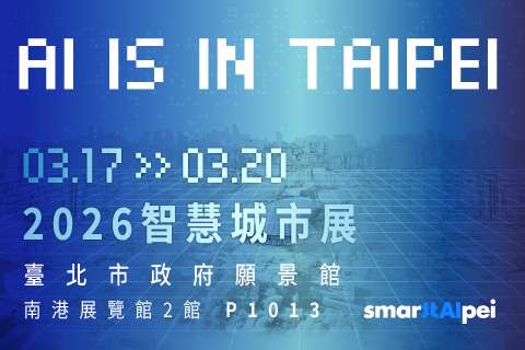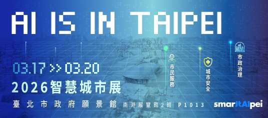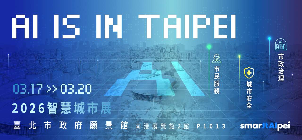 2026 智慧城市展將於 115 年 3 月 17 日至 3 月 20 日於南港展覽館二館舉辦。臺北市政府設置「臺北市政府願景館」,以「AI is in Taipei」為主題,呈現人工智慧於市政治理與公共服務之應用成果。